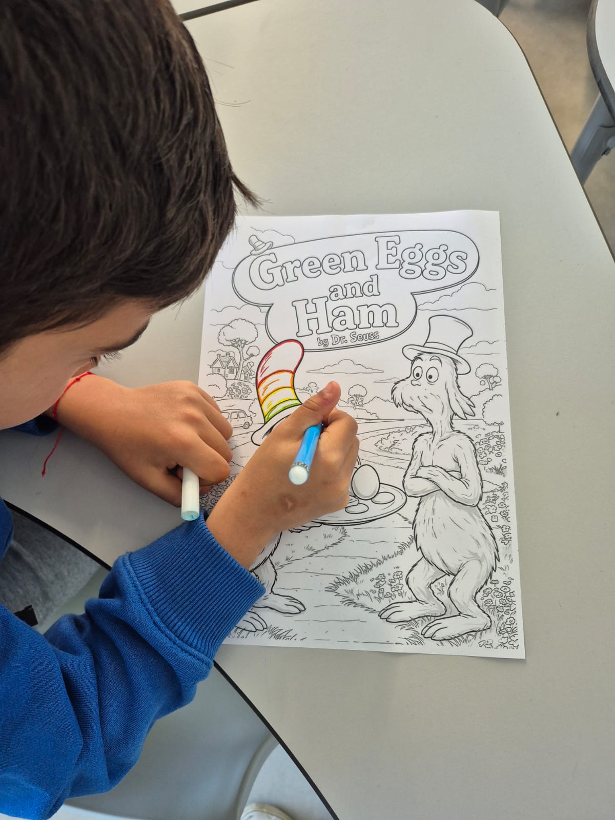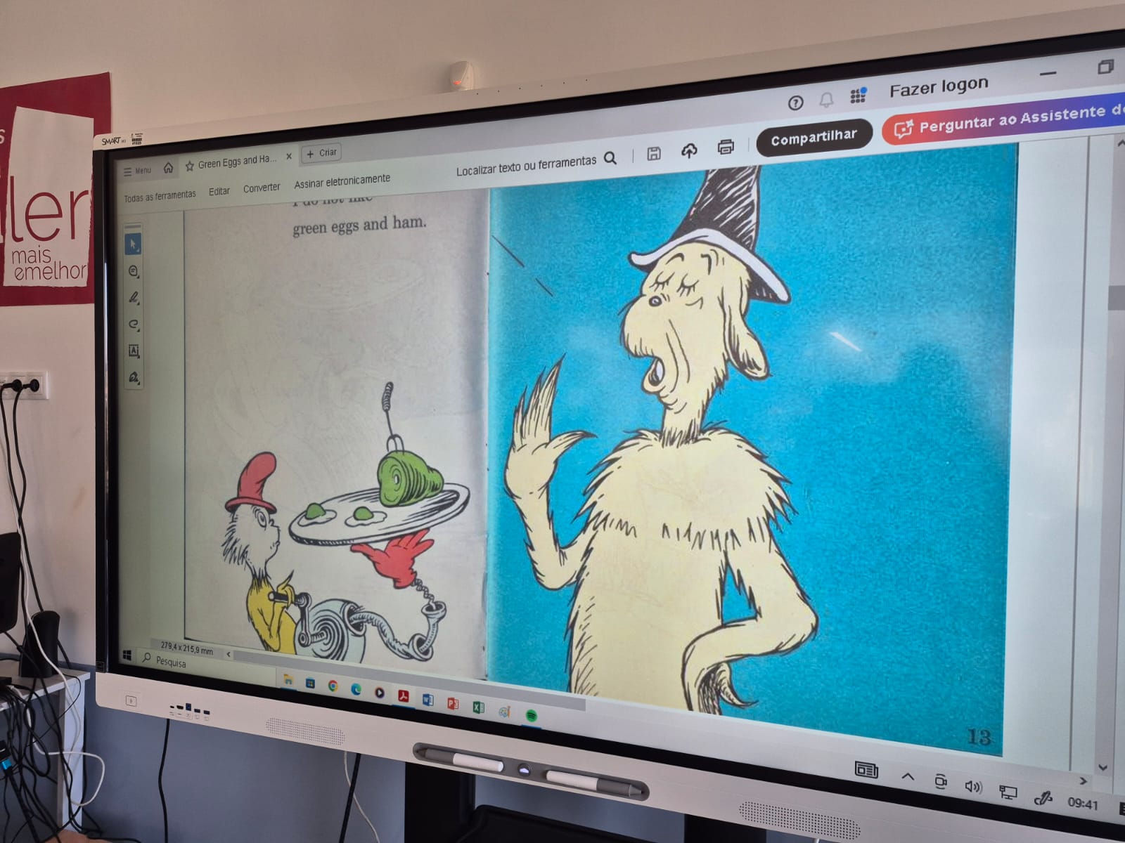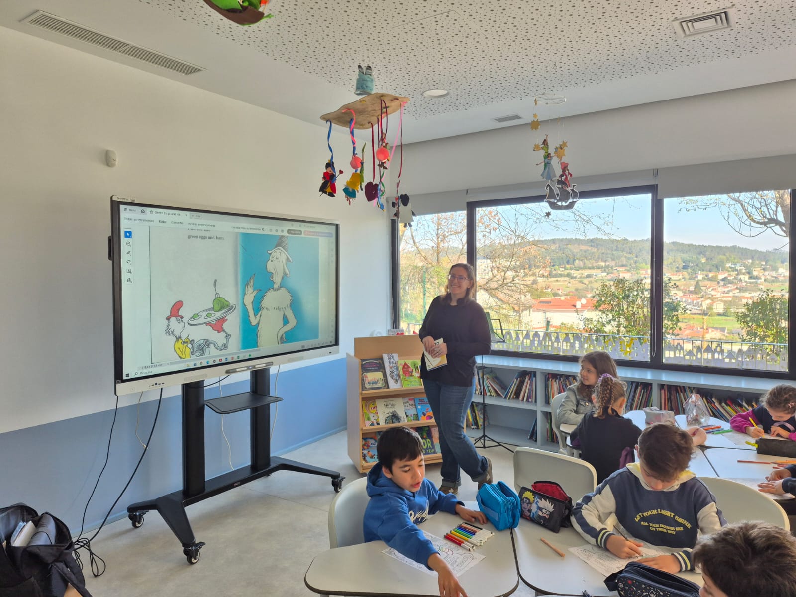 Reading Week started today in our schools and libraries! It began at the Library of E.B. de S. Pedro with a fun reading of Green Eggs and Ham by Dr. Seuss. The reading was carried out by my dear master's student and future English teacher for the 1st cycle of Basic Education, teacher Eugénia. On Friday, the reading will continue at the E.B. de Gualtar library. After listening, the students started a project about the story, which will be shown in an exhibition in the libraries. Dr. Seuss, whose real name was Theodor Seuss Geisel, was an American children's author and illustrator. He wrote more than 60 books, including Green Eggs and Ham, The Cat in the Hat and How the Grinch Stole Christmas!, which became some of the most popular children's books in the world.