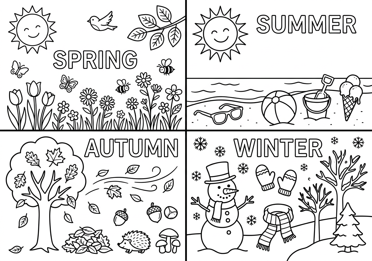 Here is a picture of the four seasons. I will hand it out, and we will colour it together in class. Let's have fun!